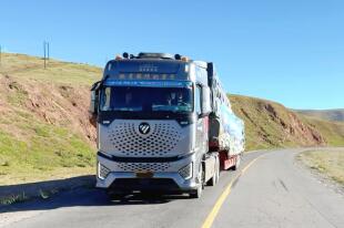駛過長距離平原、經歷持續海拔提升、穿越可可西里無人區等考驗后,“氣貫天路,青藏之巔”歐曼燃氣重卡青藏線極限工況運營挑戰賽已進入第三站的征程。伴著青藏高原湛藍天空,竇子哥駕駛著滿載貨物的歐曼銀河燃氣車,在翻越了青藏線最高海拔路段——唐古拉山山脈-那曲后,8月21日,歐曼銀河燃氣車沿109國道繼續前行,向拉薩進發。